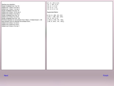 • or better yet... in editing mode, highlight rows and instruct the app to carry out the elementary row operations yourself! Learn the essence of the Gaussian algorithm without the hassle of carrying out the arithmetic details.