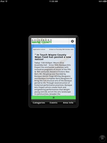 Powered by In Touch Systems mobile marketing system, Wayne County Travel & Tourism is your go-to guide for exploring all of Wayne County North Carolina has to offer. A complete schedule of all the events and activities throughout Goldsboro and Wayne County North Carolina is available with this free app. This app will lead you to attractions, historical sites, museums, as well as where to dine, shop and stay.