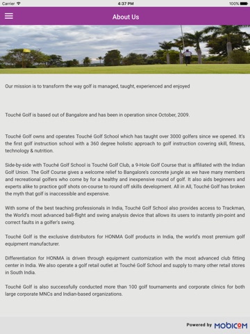 Touche Golf is a Bangalore based company running a 9-hole Golf School and an integrated Golf Club.