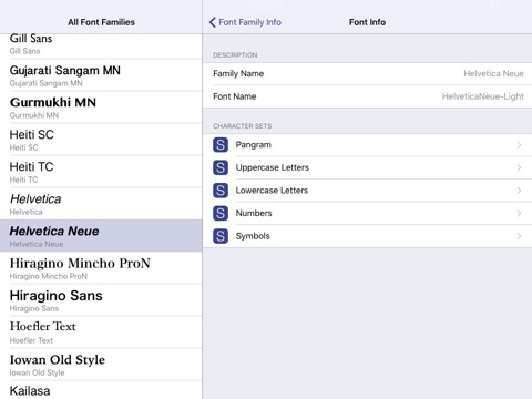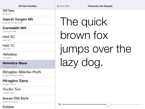 This is a good app for developers, cause it shows the fonts the device have to not embbeding extra fonts in their apps.