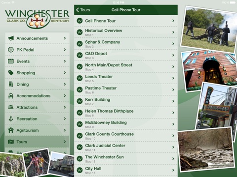 The Tour Winchester App will enrich your visit to Winchester, Ky., where there is something to satisfy your curiosity, your palette, your sense of adventure, and your taste for the unique.