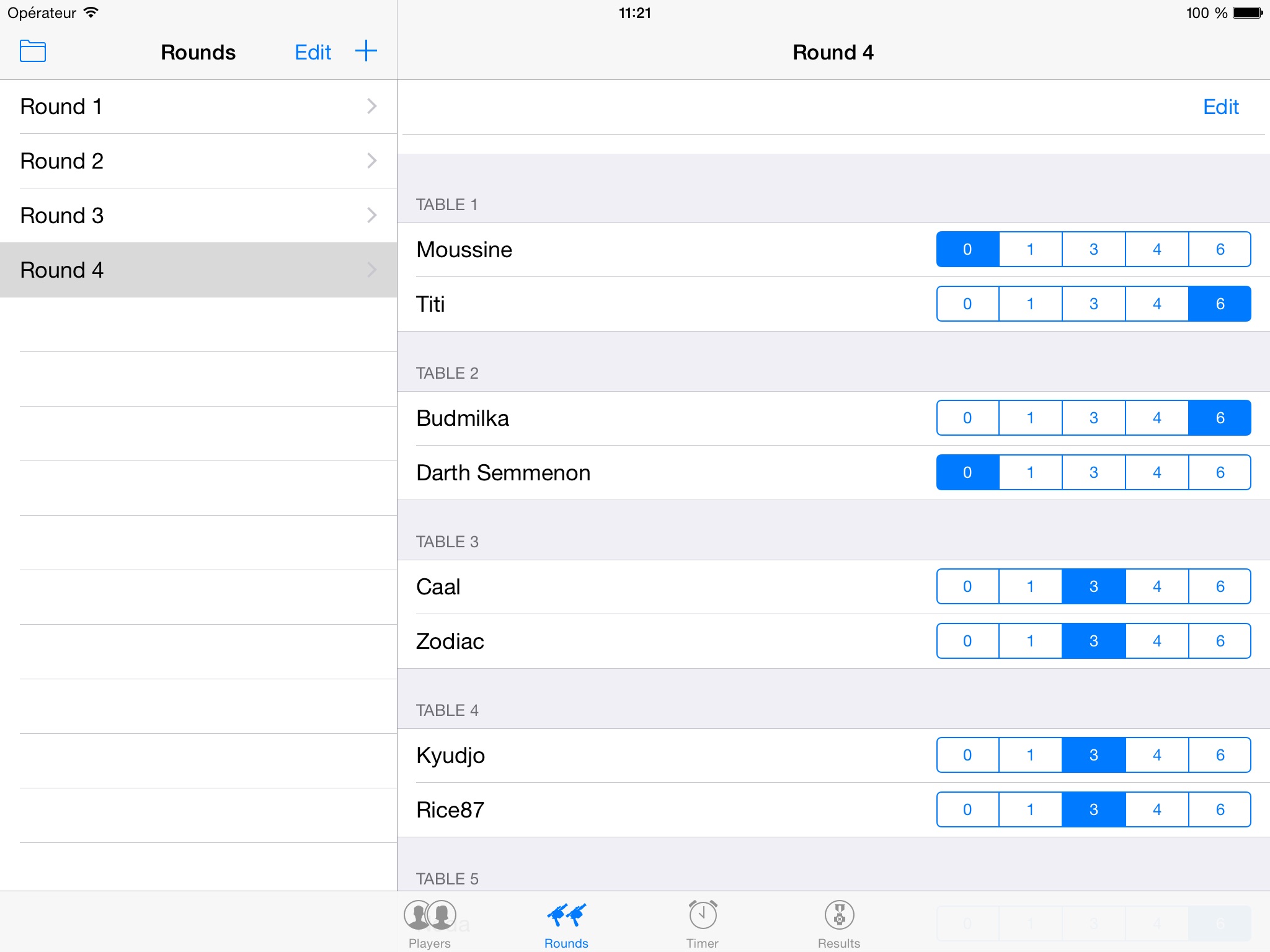 - connect to an Apple TV to display pairings, the timer, and results on a big screen