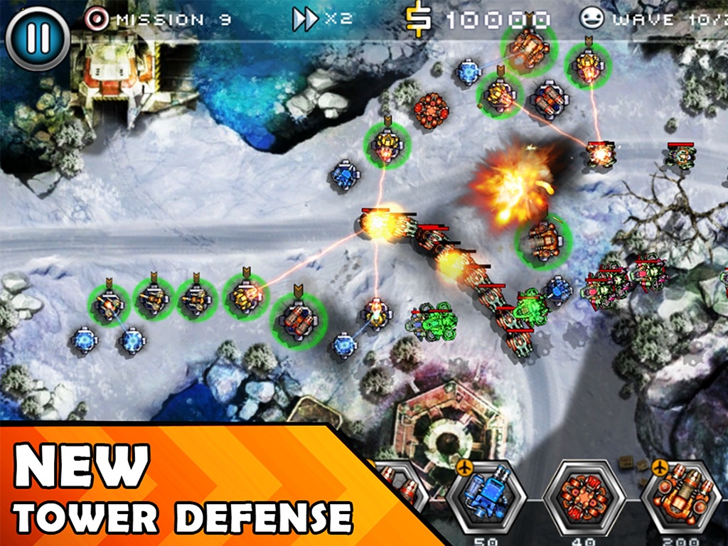 Enemy like aircraft, tanks and sophisticated weapons are fully utilized. Players must have the right strategy and great agility to achieve absolute 3 stars after each screen in this Tower Defense game.
