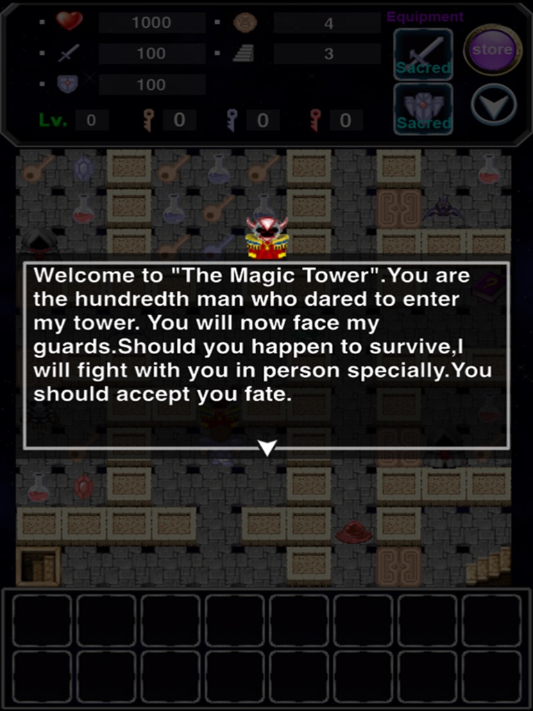 A martial arts high-strength devil, want to find a has enough power to rule the sacred sword, and with him with darkness over the world. So, he takes a Princess Doll as bait, lure a warrior (you) to enter the tower. In the tower, the devil disguised as a thief, in the course of the game