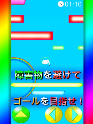 上昇ボタン、左右ボタンを操作して様々な動きをする障害物に当たらずに上のゴールを目指そう!