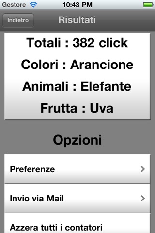 Premendo per almeno 3 secondo sul display comparirà la classifica dei piu cliccati, le preferenze e la possibilità di inviare via mail il resoconto complessivo .