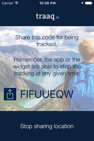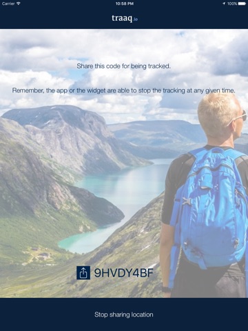 traaqIO is the app for sharing the current location in an anonymous and fast way with your friends through the iPhone. It allows you share your location until you wish in an easy and suitable way. A walking through the forest,a fitness activity, a meeting with friends.. it will be useful in a lot of situations. Use it! "Continued use of GPS running in the background can dramatically decrease battery life."
