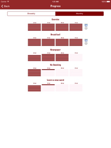 * Biweekly and monthly progress views.