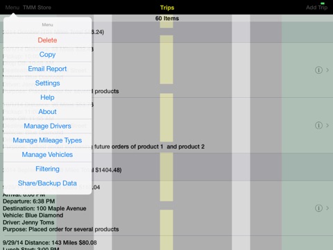 Supports multiple driver tracking and includes trip sorting and total mileage reporting for each driver. Additionally, for all drivers easily export a report of total trips, total miles, average miles per trip and total vehicles driven.