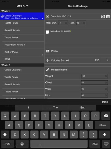 - Post workout completions to Facebook and Twitter (iOS integration required)