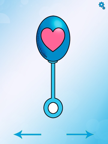 The child can simply touch or shake the rattle to hear the sound. They can navigate to the next rattle with the large arrows at the bottom of every rattle.