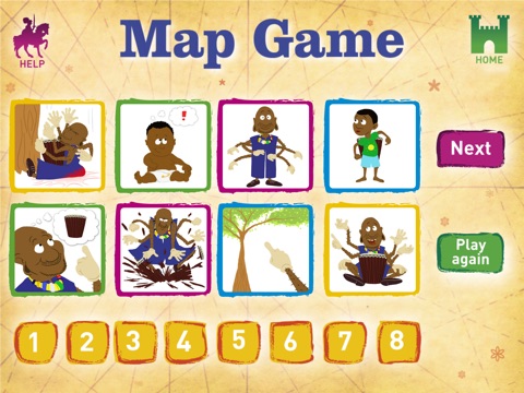 • Map Game. Rearrange the illustrated audio tiles into the right order – a fun way to understand the structure of the story.