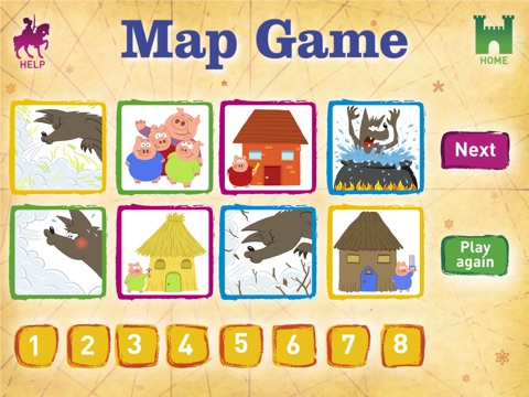 • Map Game. Rearrange the illustrated audio tiles into the right order – a fun way to understand the structure of the story.