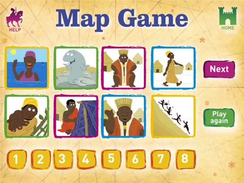 • Map Game. Rearrange the illustrated audio tiles into the right order – a fun way to understand the structure of the story.