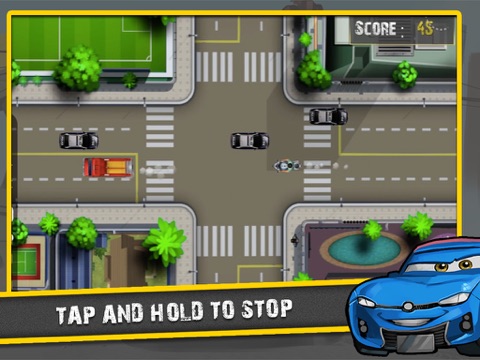 - Tap cars or motorcycles, hold to stop or swipe to move faster