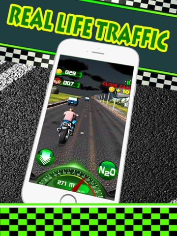 Drive your moto through city and avoid traffic vehicles while increasing speed to the limits. While dodging traffic on a high speeds you gain money and you can purchase other better and faster bikes.