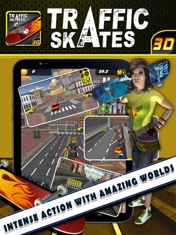 Traffic Skate 3D is an action-packed 3D skating game where you skate through various adventurous HIGHWAY, dangerous SUBWAY AND CRAZY TRAFFIC of New York. With various power-ups and real skating characters like Pepi, Racer, Surfers and Tomcat, you can explore amazing streets filled with crazy traffic and dangerous hurdles.