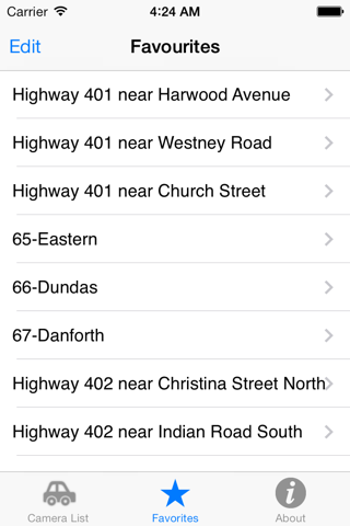 Ready to head home and you want to check the traffic? Traffic Toronto is the fastest way to get to the traffic web cams that matter to you. Instead of browsing to a web site and working your way through the menus and map graphics to find a web camera just open Traffic Toronto on your iphone and go straight to the camera you want with one click.
