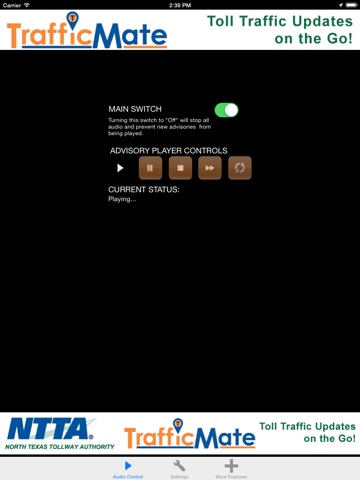 Listen to your phone play North Texas Tollway travel advisories near you, in your direction of travel. As you travel, it will automatically keep you updated.