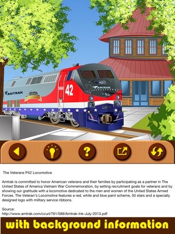 Inside the game there are 30 great handmade puzzle pictures collected on the popular trains and locomotives!