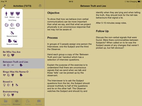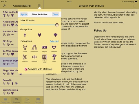 Activities can be selected by group size and duration so that you can quickly and easily pick the activity right for your group. Each of these activities has been tried in a number of real training situations.