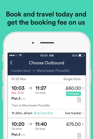 • Auto-split your single ticket into multiple ones to save on longer journeys, with SplitSave.