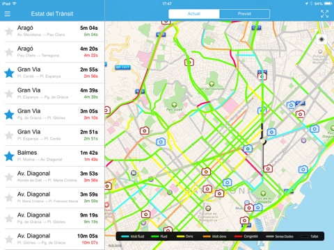 Transit is an application that offers the user a consulting tool showing the current and predicted traffic conditions, and in addition the ability to view images of traffic cameras in the city of Barcelona.