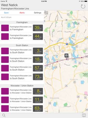 ● Real Time Tracking Data - Route, stops and estimated arrival times are all provided directly from the MBTA tracking systems.