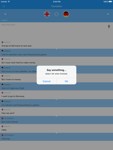 Please enter the text you want translated by writing or speaking. This application can translate your voice.