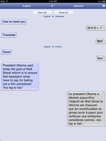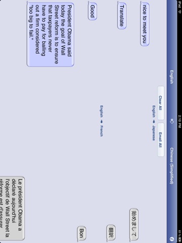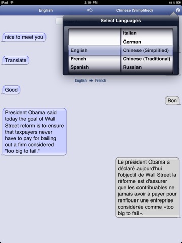 iPhone 3g 2.2, seule la traduction anglais-chinois est dispo,même si dautres sont selectionnees Solution: jai mal cherché, car il faut sélectionner la traduction voulue depuis la liste des traductions, en cliquant sur la droite de la traduction désirée.(je sais, cest pas clair, cest pourquoi je ne mets que 4 étoiles)