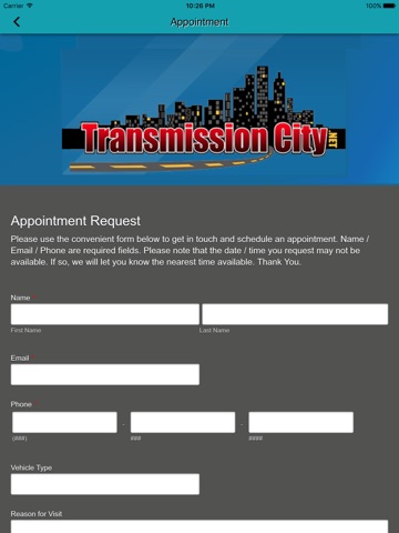 Welcome to the official app for Transmission City, an easy-to-use, free mobile app designed to conveniently address all of your issues concerning your vehicles general auto repair, transmission performance and maintenance needs. Transmission City is a superior quality company that proudly offers dedicated, quality work within the greater Fresno, CA area. Functional features of the app provide you with easy access to such things as