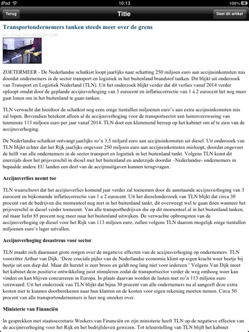 Het laatste nieuws uit de transportsector. Daarnaast een overzicht van de actuele rijverboden in Europa. Maar ook voor het onderweg checken van het actuele vrachtaanbod is de Transport Online app handig.