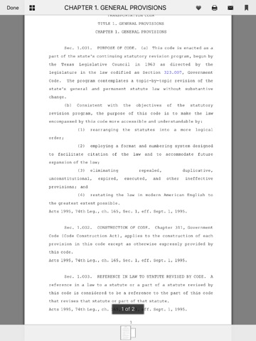 The full Transportation Code will be stored on your iPhone, iPad or iPod Touch.