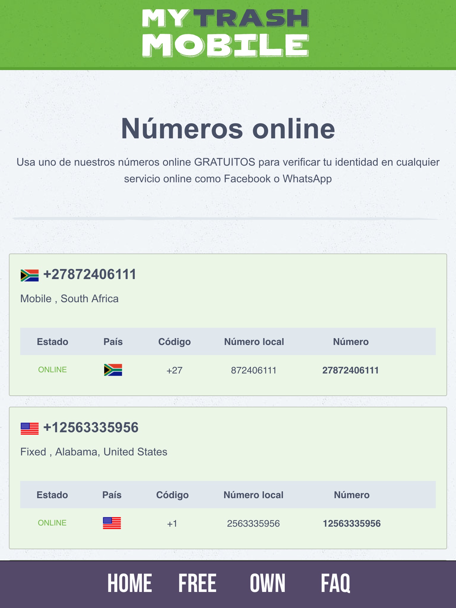 Tired of websites asking your number to sign-up? Thats over! Simply choose one of our FREE online numbers and get the notifications for any service right here. Never enter your real mobile number again!
