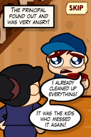 The principal found out and was very angry! The janitor reasoned out and said, “I already cleaned up everything! It was the kids who messed it again!” There were kids who heard his words, and they got so angry being blamed that they actually never did!