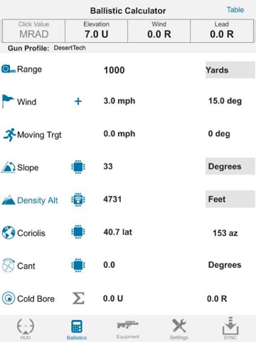 I down loaded the original TRASOL, not so impressed with the UI. It was clunky to say the least. So today at the range I noticed an update. Holy coolness. A HUD that is a real HUD. What!!! An intuitive UI and a ballistic calc that works. Hallelujah. Pictures... Moving target speed calculators, wind direction thing. ZOooooom. What a refreshing change in the world of BCs. Well done Desert Tech, well done. Ummm whats next. Im off to the range again tomorrow to show some friends.