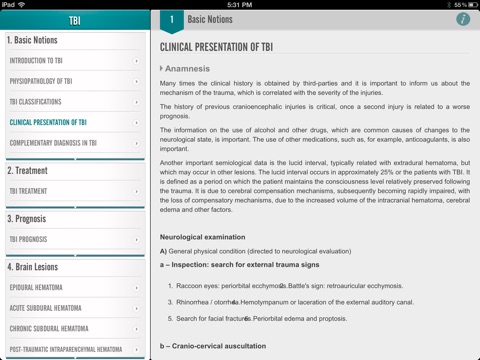 The TBI application aims to aid in learning on this complex subject. The content was developed by a team of neurosurgeons that actuate in Santa Casa de Belo Horizonte - MG (Brazil) and are members of NEUROSURGERY BLOG. It is composed by physicians: Dr. Mauro