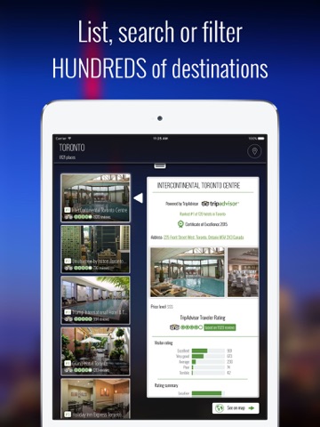 Maps for the entire country, and travel content for Toronto are included for free when you download the app. Travel content for every other city is available through In-App Purchases.