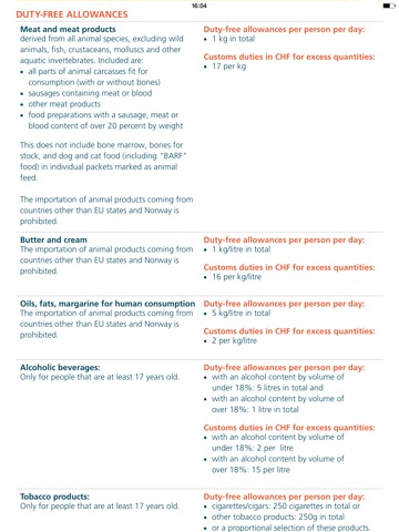 • Shopping abroad (duty-free allowances): duty-free limits for alcohol, tobacco and foodstuffs