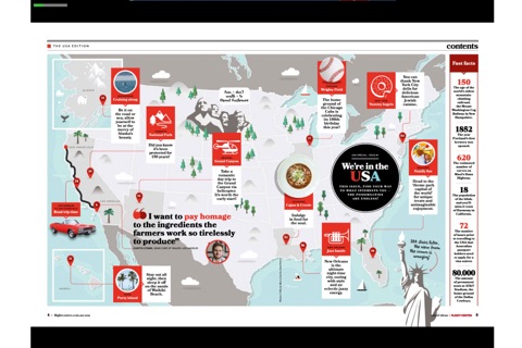 The first edition of the magazine takes you on a tour of the USA and includes features such as: