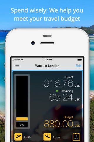 Manage your travel budget from your iPhone. Enjoy travelling and save money at the same time.