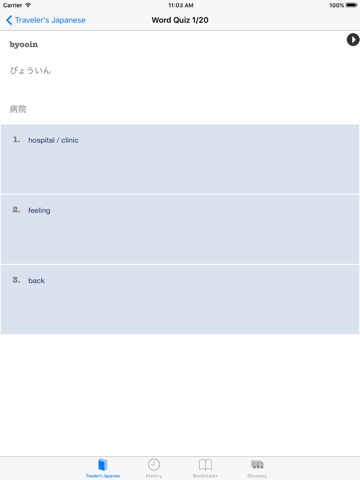 This Traveler’s Japanese application comes with audio (totaling over 75 minutes) so that you can practice speaking Japanese by simply tapping on Japanese words and phrases on the screen.