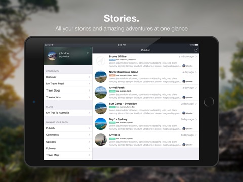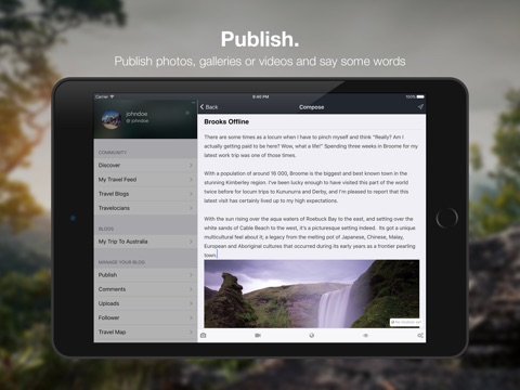 The Traveloca app enables you to read, follow and create your own real travel blogs with your iPhone or iPad. Your travel blog is accessible from the web and inside the app. We don’t like the same old story therefore you design it just the way you want it to be! Use different Themes, write stories and upload videos and photos. No matter what kind of travel blog you want to start. Its up to you to make it personal or professional, public or private.