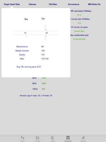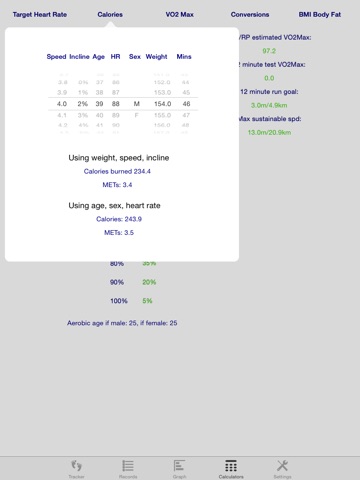 - See what % fat and % carbs you are burning at various speeds using your VO2Max