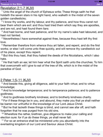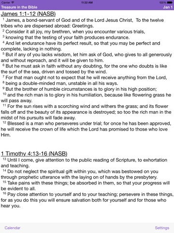Treasure2015 follows the Bible reading schedule from http://www.TreasureInTheBible.com - see there for more information.
