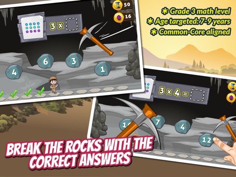 Learning multiplication is fun with Treasure Dash Math Lite! This app is for beginning to intermediate level multiplication learners, and is aligned with Common Core Standards. Students learn multiplication concepts (including interpreting arrays and multiplication properties), practice multiplication problems, and apply their knowledge to real-life situations with word problems. This Lite Version gives you free access to try out the first 9 levels of the game. You can upgrade to the Full Version to get full access to all areas of the game.