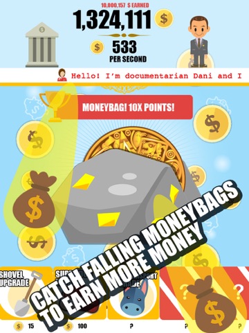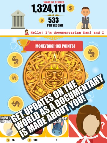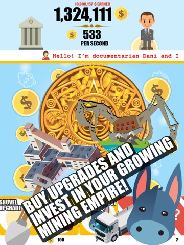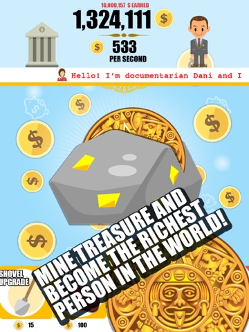 This treasure clicking game lets you experience the joy of being an entrepreneur and starting a massive treasure mining empire from the safety of your phone screen. Tap treasure-rocks to mine them and use the money you earn to buy upgrades and invest in new equipment, all while receiving colour commentary from a documentarian about how youre changing the world.