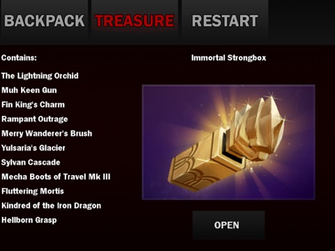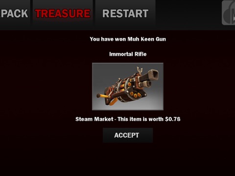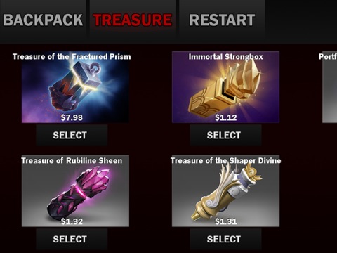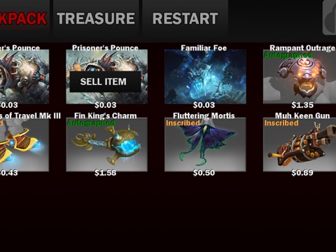 Simulates chest opening for one popular title. On the first screen you can see your inventory, all items you have won will come there. It is possible to sell those and earn money. If you click on treasure then you can open some, since its discontinued from the real game then i did not add all but most popular ones for you to pop, total of 5. Also has real prices.