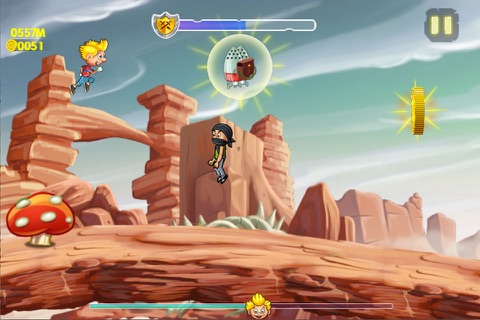 Enjoy the amazing gameplay with superpower ups like jetpack, spring shoes and superman powers.