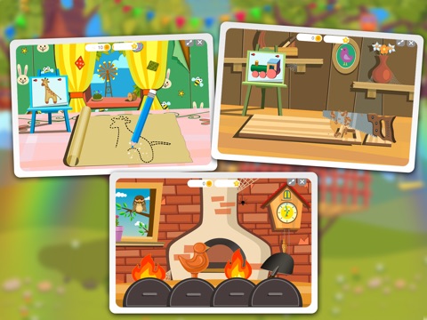 - Fix wooden horse, piggy bank and ripped toy bunny in a workshop under the tree!